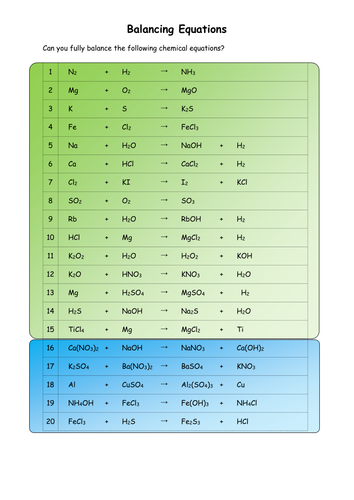 When you are trying to balance the chemical equations you should remember that you can only change the value of coefficient in front of the element or compound and not the subscript. 2ag 2 o 4ag o 2 28. Draw a square around each coefficient. Identification of salts from a variety of acid reactions. The printable worksheets are provided in pdf format with separate answer keys. Draw a circle around each subscript. Cl 2 + 3f 2 → 2clf 3 30. Balance each of the following equations. The balancing equations worksheet answers are given by using the example found in the book. Creates a free printable and downloadable pdf. Worksheets cover a range of topics including basic chemistry, writing chemical formula, chemical reactions and balancing chemical equations. In case the reaction necessitates energy, it's indicated over the arrow. Chemistry balancing chemical equations worksheet answer key if you don't understand the equation following a few minutes, utilize the proportion technique.