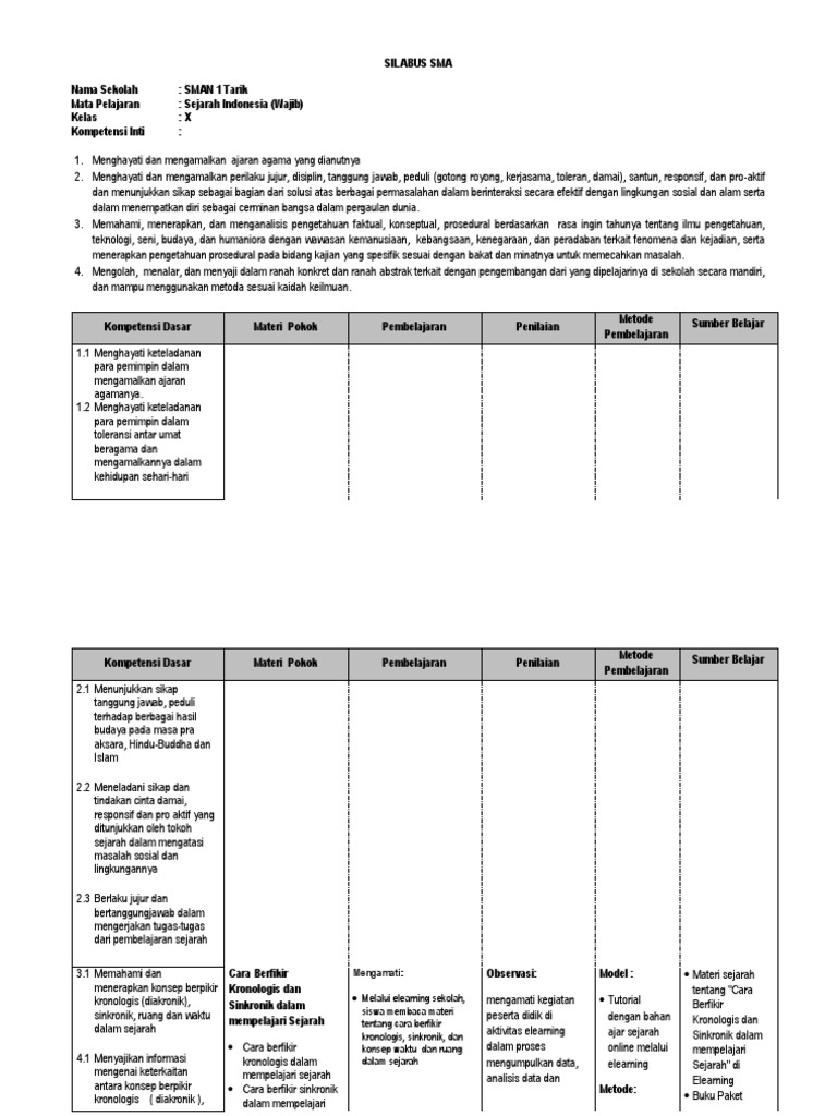 Silabus Sejarah Indonesia Kelas 10 : Silabus silabus ini adalah silabus k13, versi ini hanya merubah tampilan agar sama dengan rpp yang saya bagikan.